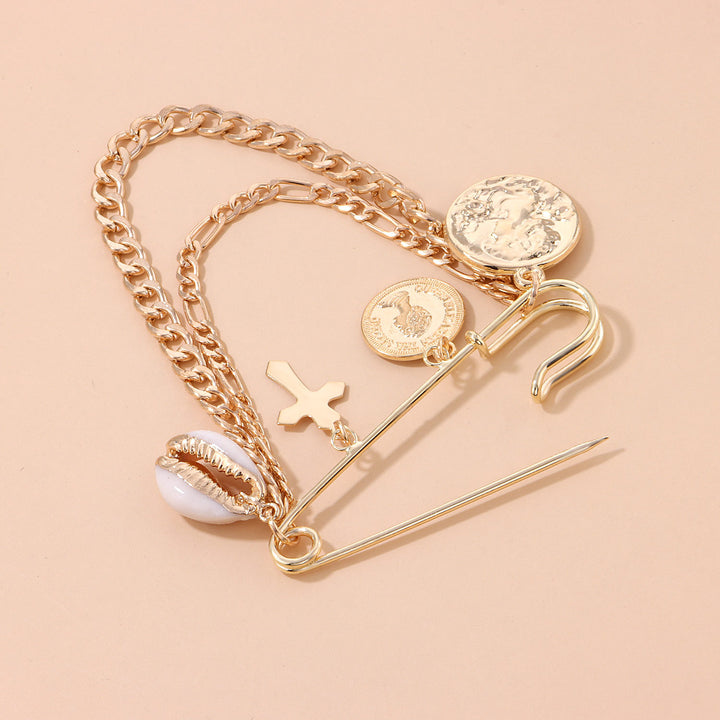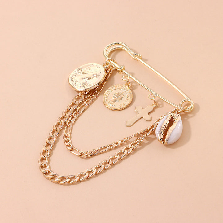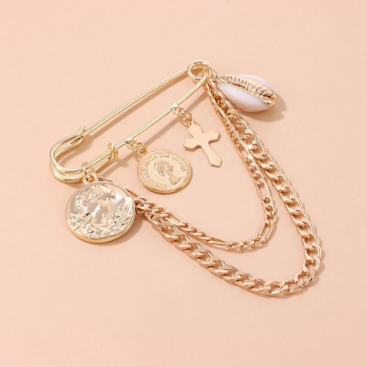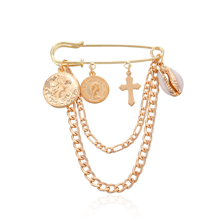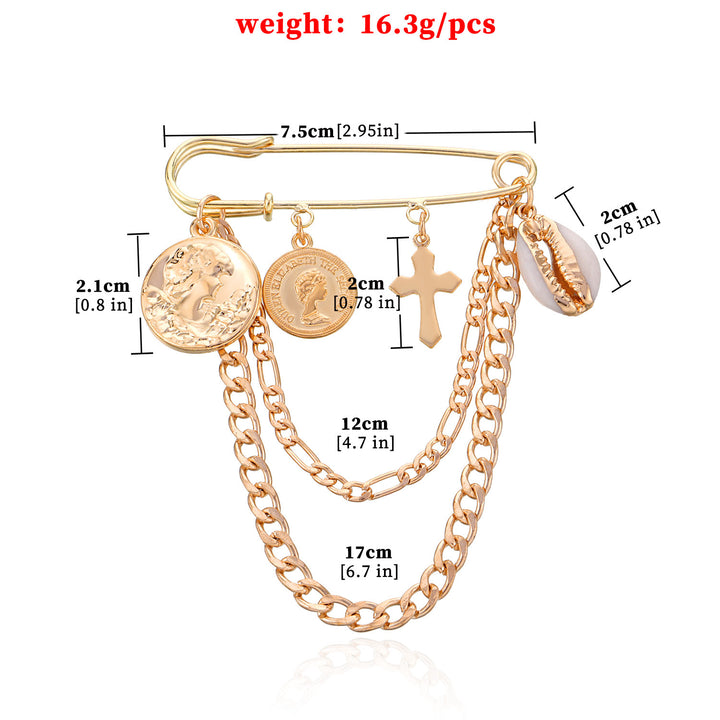 European And American Cross-Border Jewelry Queen's Head Relief Disc Brooch For Women Shell Chain Trendy Retro Pin Accessories